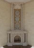 • каминную отделку, облицовку керамическими изразцами, шамотом, ракушечником, мрамором, песчаником, сланцем, талькомагнезитом;